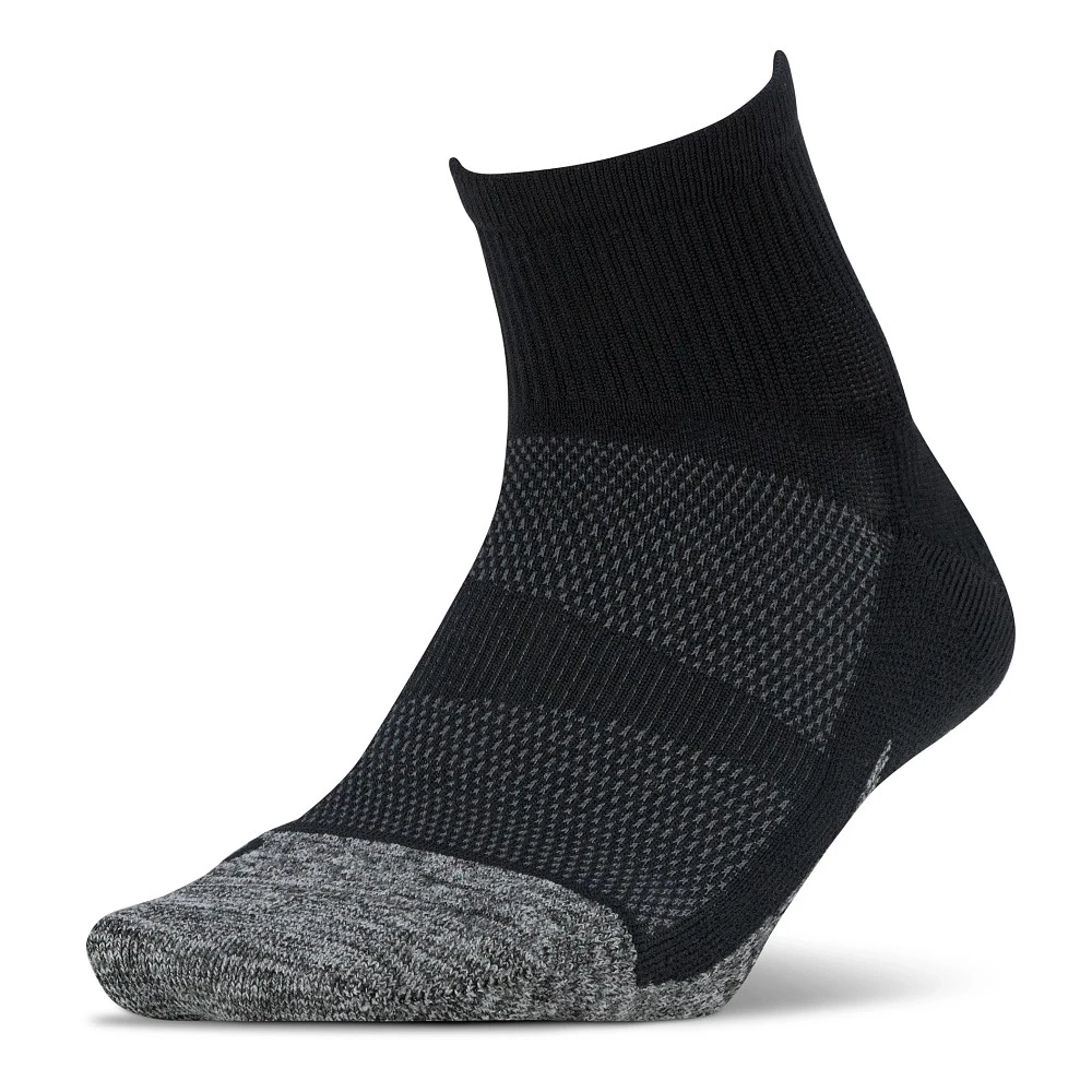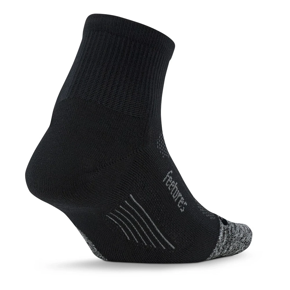 FEETURES® ELITE LIGHT CUSHION QUARTER SOCKS :: Your feet will flip out wearing your Feetures Elite Light Cushion Quarter Socks. This sock’s got it all: targeted compression, cushioning, and impact protection where you need it most. Eliminate blisters and keep your feet cool and dry with anatomical left/right design, seamless toe, foot-hugging compression fit, and sweat-wicking fibers. You’ll also get added protection from rocks, dirt, and mud from the 3″ cuff length of your Feetures Elite Light Cushion Quarter Socks. Whew! Told ya they’ve got it all.