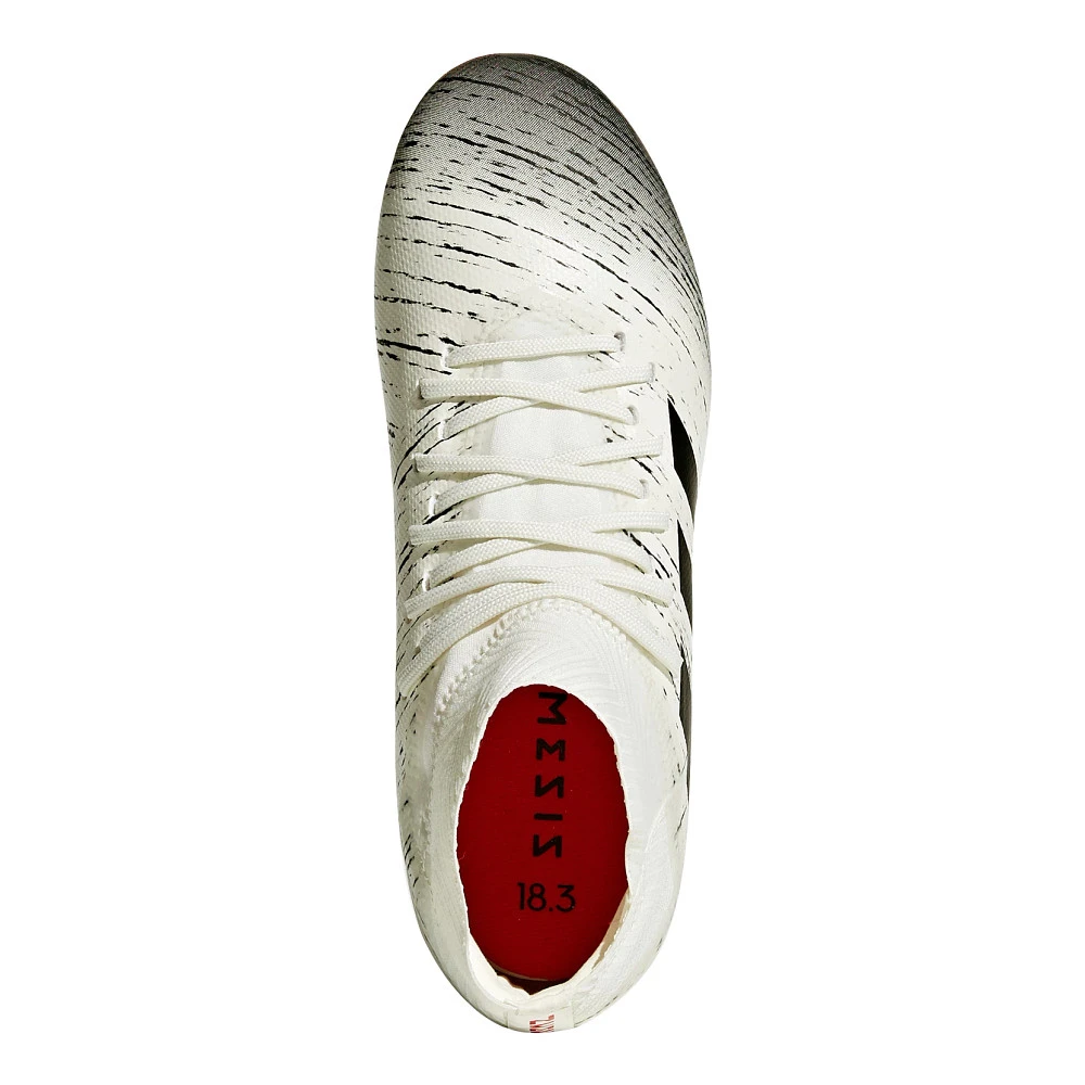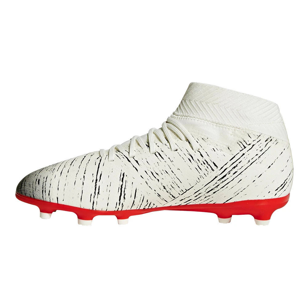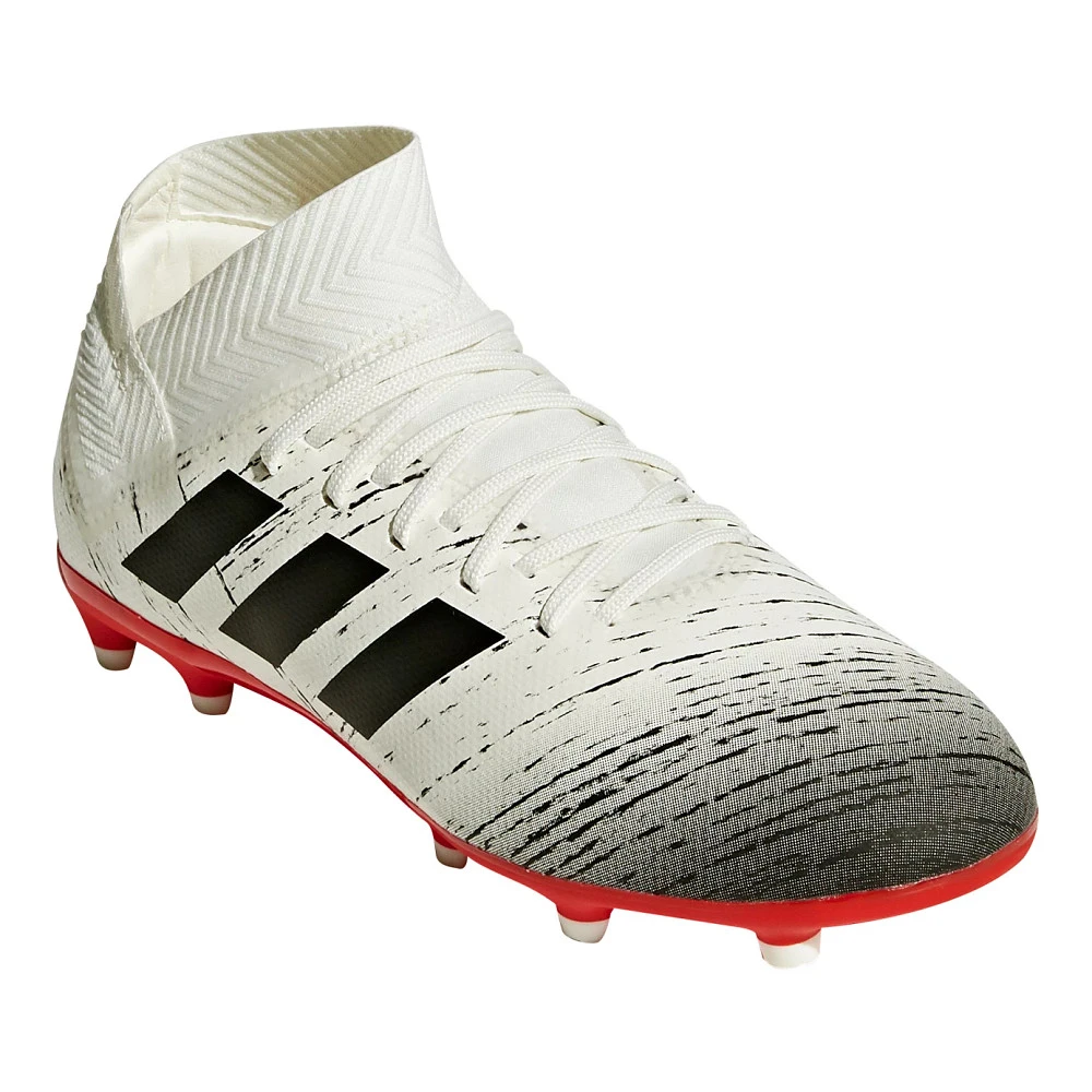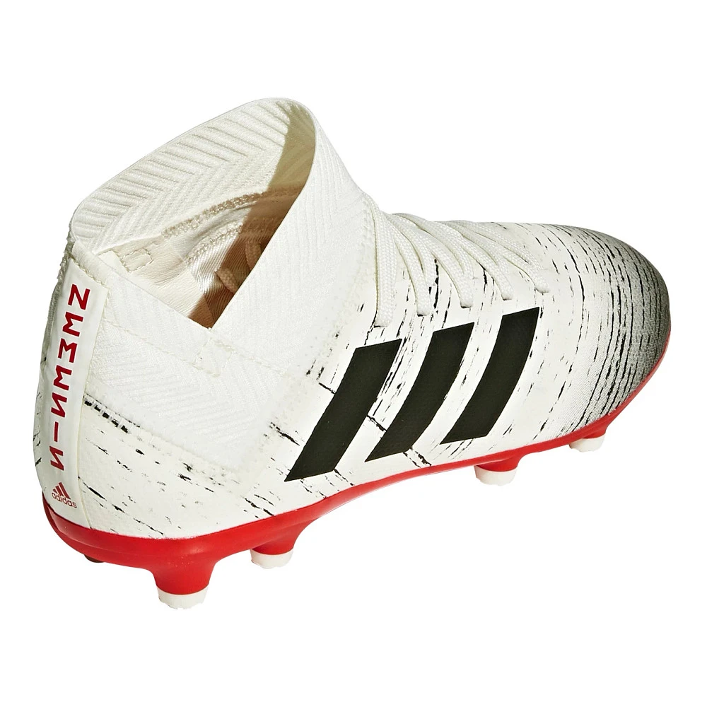 Kids ADIDAS® NEMEZIZ 18.3 FG :: Your soccer star will weave through defenders in the Kids adidas Nemeziz 18.3 FG cleats. Give them an extra edge to fake out opposition while their feet stay stable and snug. Watch ’em blast kicks with explosive power thanks to a bandage foot wrap bringing flexible fit in the Kids Nemeziz 18.3 FG.