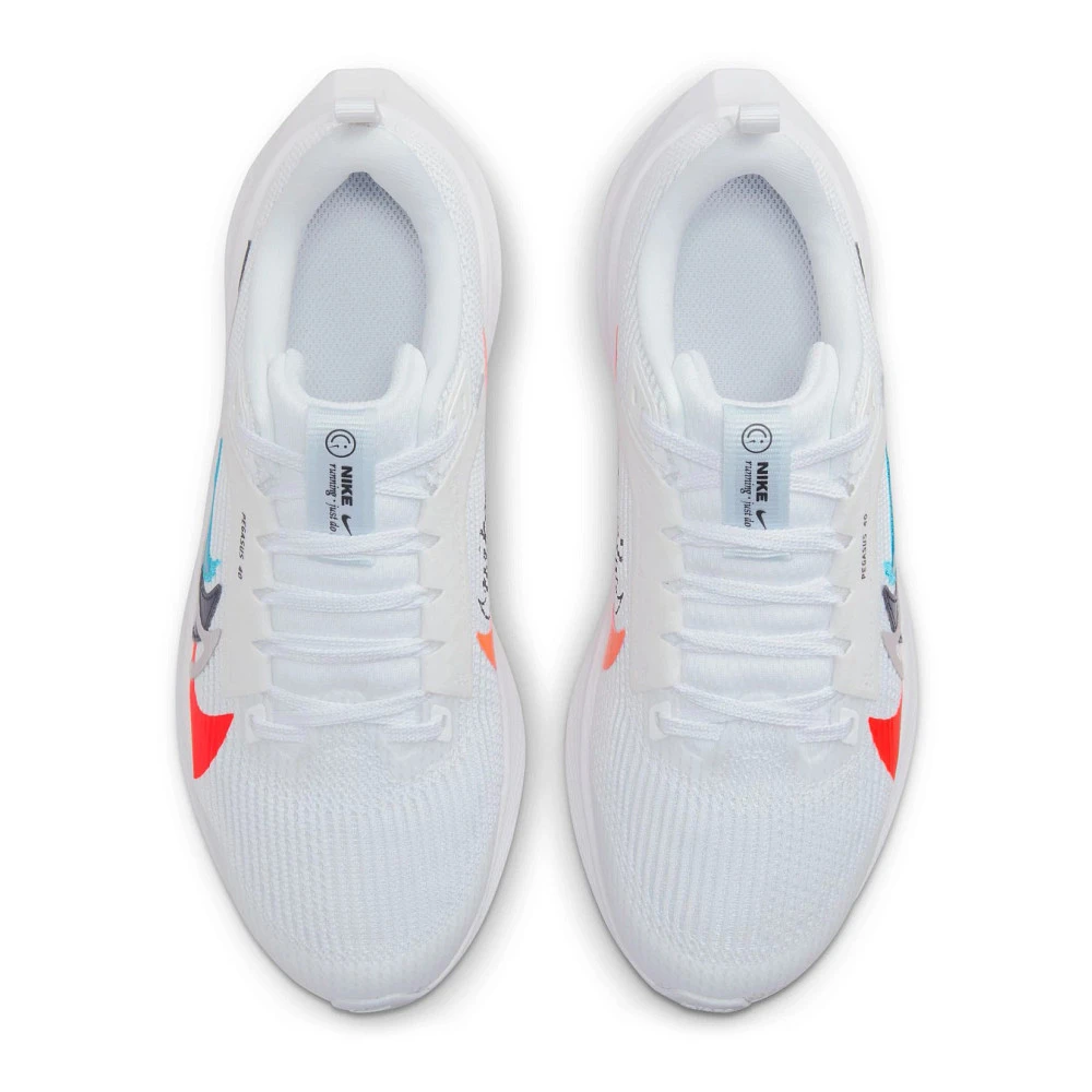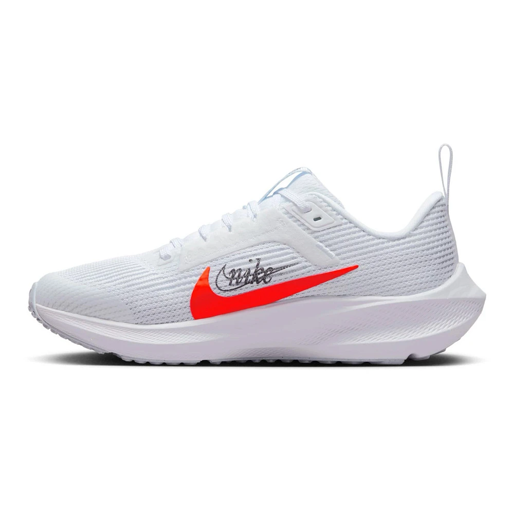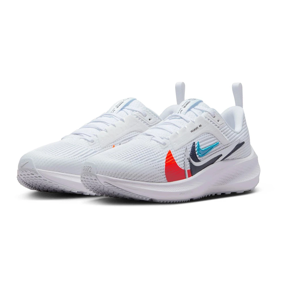 Kids NIKE® AIR ZOOM PEGASUS 40 PR :: Get ready for the greatest of Pegasus histories! The updated Kids Nike Air Zoom Pegasus 40 PR running shoe shines a light on an iconic past with overlaid swooshes of Pegasus 1, 24, 35 and 38. But it doesn’t just look good; they are also incredibly light, breathable and stable. Featuring extra layers providing durability for kiddos who drag their toes, cutout grooves underfoot improving flexibility, and cushion foam so bouncy they won’t want to stop running. With the Air Zoom Pegasus 40 PR, style comes along for the ride – because who can resist its new multicolored look?