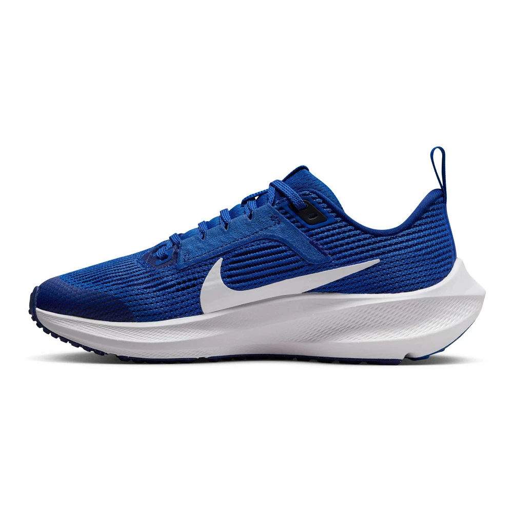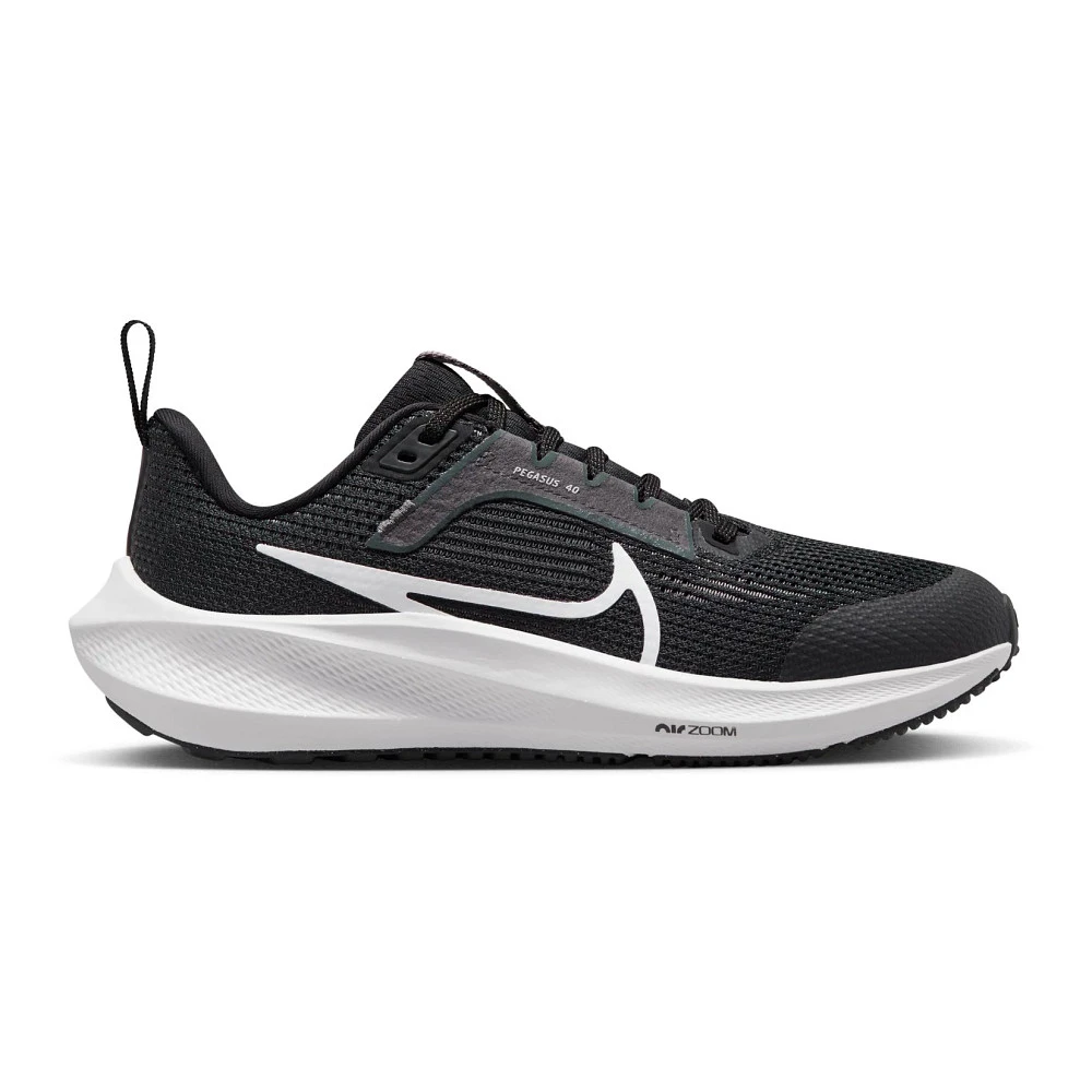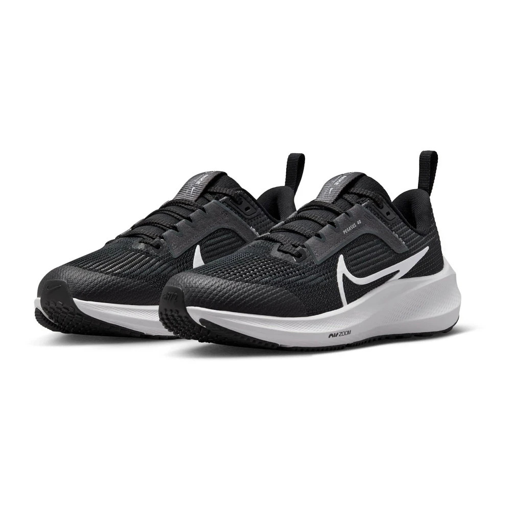 Kids NIKE® AIR ZOOM PEGASUS 40 :: Young athletes go faster in the updated Kids Nike Air Zoom Pegasus 40. Ultra lightweight, breathable, and stable, it’ll be like running on clouds! An extra layer on the top of the toe adds protection for when they drag a foot. And with cutout grooves in an improved waffle-inspired traction pattern, transitions from heel to toe are easy-peasy and oh so flexible. Plus, the supremely-cushioned foam and Zoom Air Unit integrated into the Air Zoom Pegasus 40, delivers a bouncy feel they’ll love to lace up.