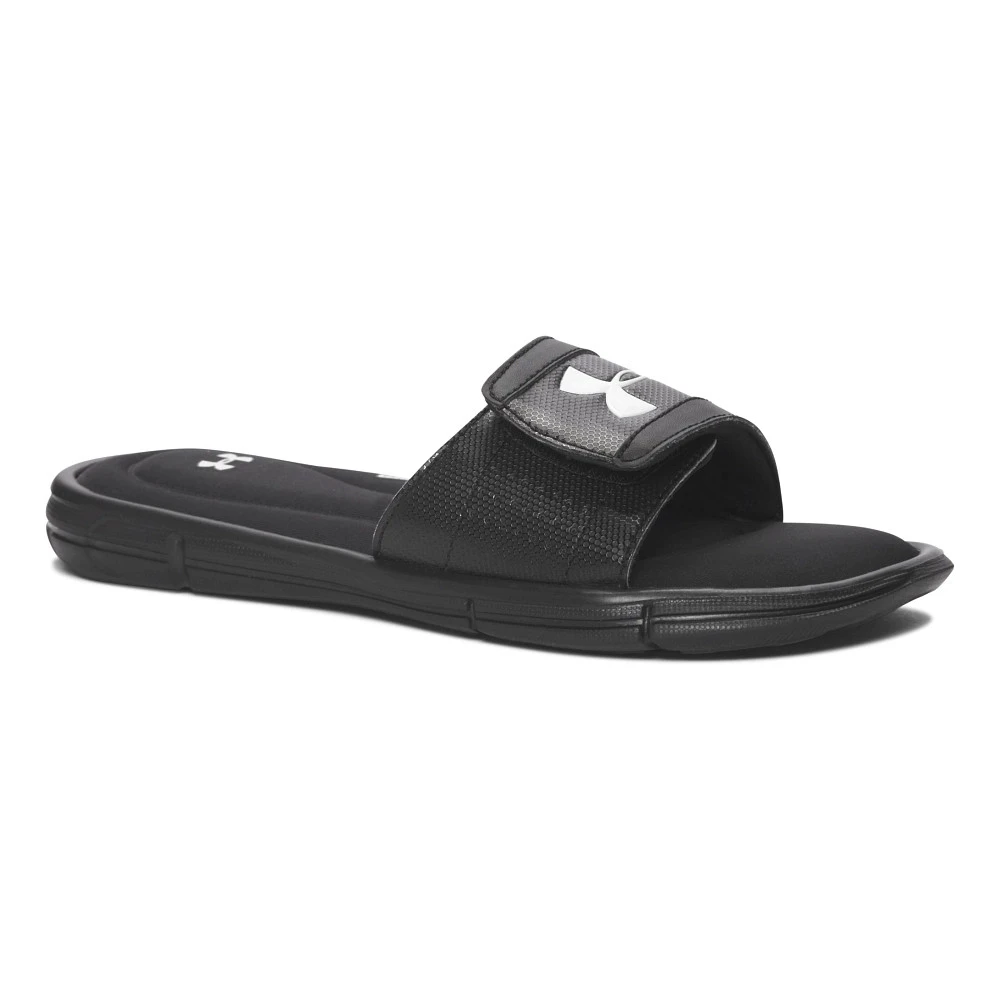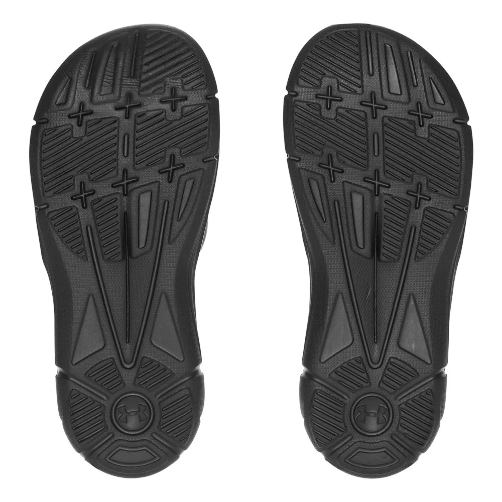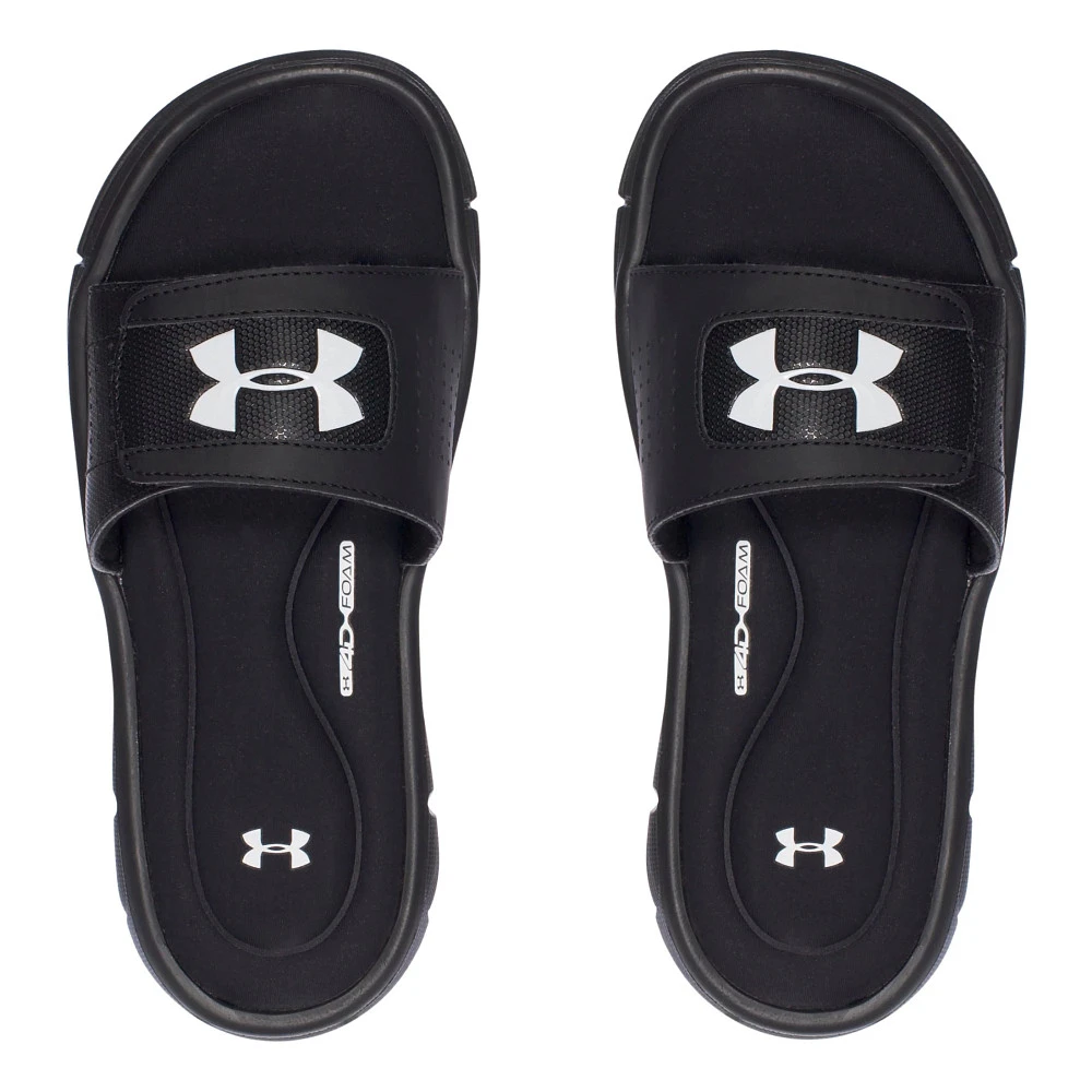 Kids UNDER ARMOUR® IGNITE V SL :: Perfect for getting to and from their sports events, it’s the Kids Under Armour Ignite V SL. Customize their fit with the adjustable HeatGear® lined strap as a cushy footbed delivers plush comfort for growing feet. Make life easy and comfy anytime with the Ignite V SL.