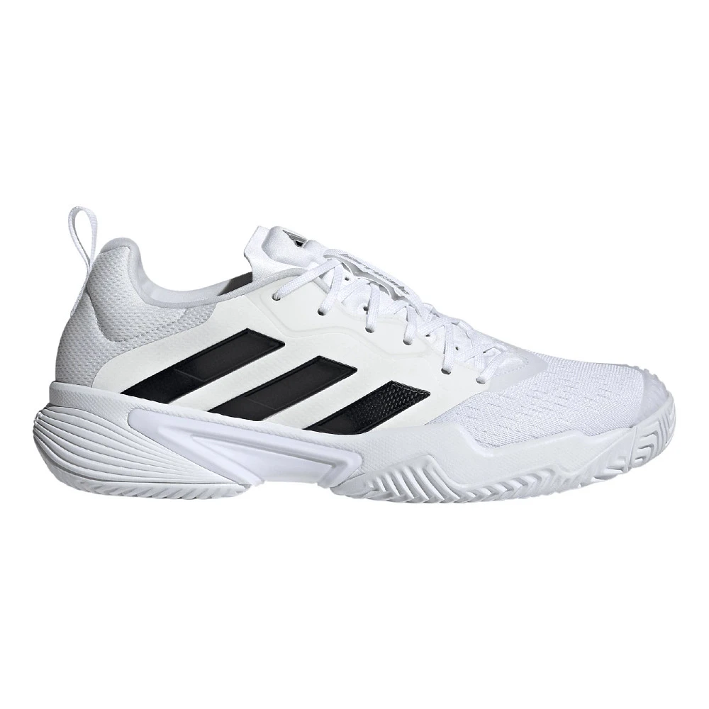 Men’s ADIDAS® BARRICADE :: Suit up! Your new Men’s adidas Barricade court shoe is ready to take on tennis, pickleball, and other court sports with power and comfort. Face aggressive moves head on with technology like ADITUFF zones in the forefoot made from recycled, abrasion resistant materials. Adiwear 2.0 rubber on the outsole has a split herringbone pattern for durability and grip during your toughest games. Build your energy from start to finish wearing the Barricade, thanks to Bounce 2.0 cushioning in the midsole and GEOFIT sense pods that guide each step in its natural motion for more comfortable play.