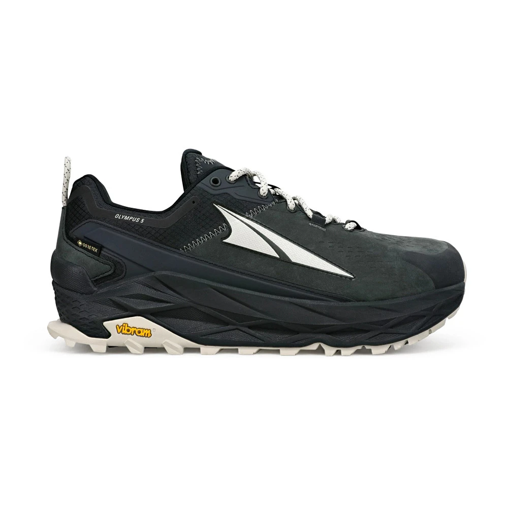 Men’s Altra® Olympus 5 Hike Low GTX :: Dirt, mud, rocks… whatever the terrain, the new Olympus 5 Hike Low GTX will get you through it. A premium collar provides a locked-in feel while our Original FootShapeâ„¢ Fit gives your feet the room they need for natural movement. Waterproof GORE-TEX product technology is guaranteed by GORE-TEX to protect your feet from the elements and a grippy Vibram® Megagrip outsole helps you with traction on every surface, wet or dry. Hit the trail in style with the comfort and protection you need for an all-day adventure.