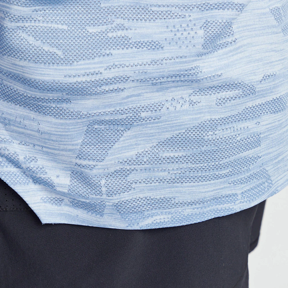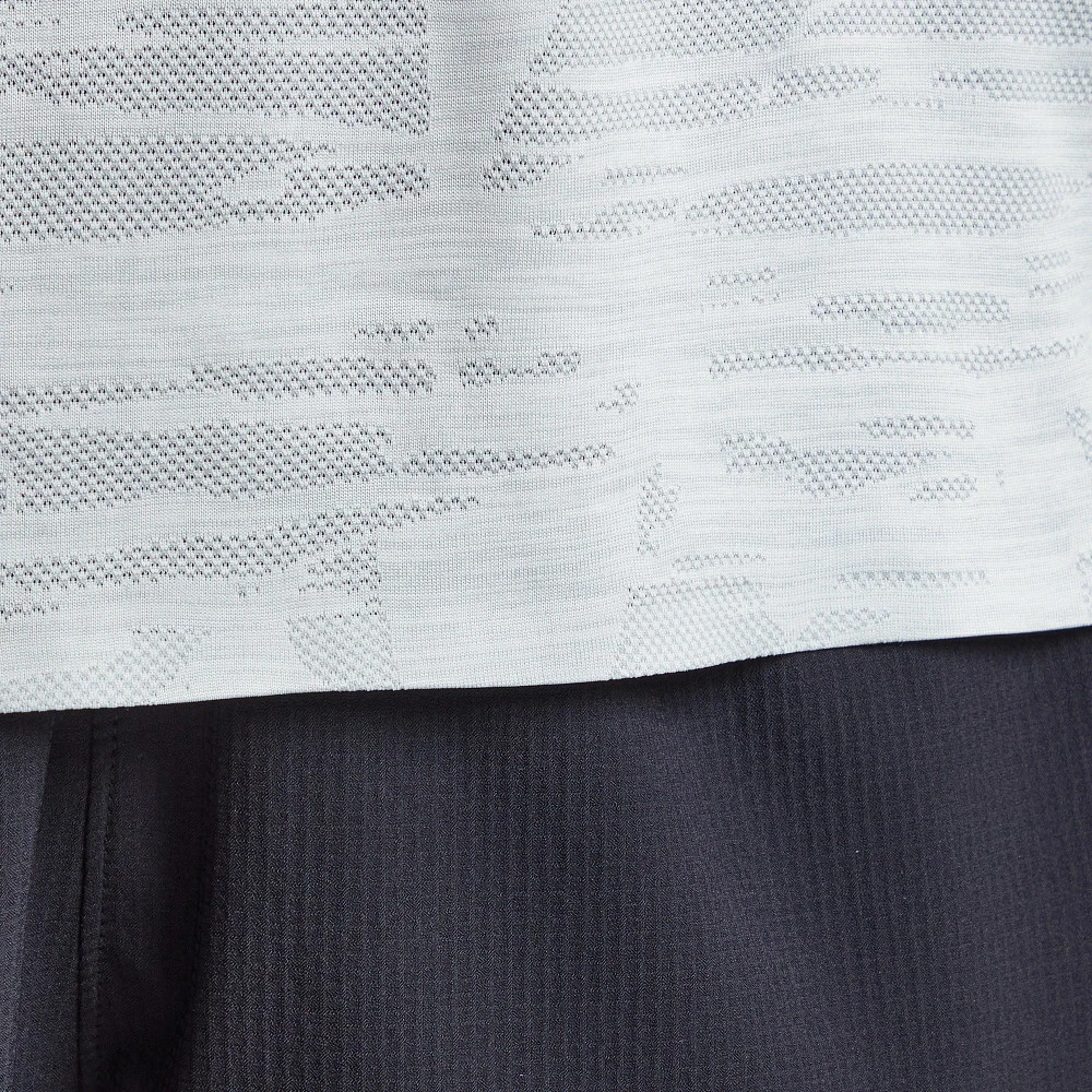 Men’s Korsa Accelerate Short Sleeve Tee :: Don’t sweat it even on the warmest days in this nearly weightless and ultra breathable engineered jacquard short sleeve run tee. Flatlock seams and strategic venting ensure a comfortably cool run or training session.
