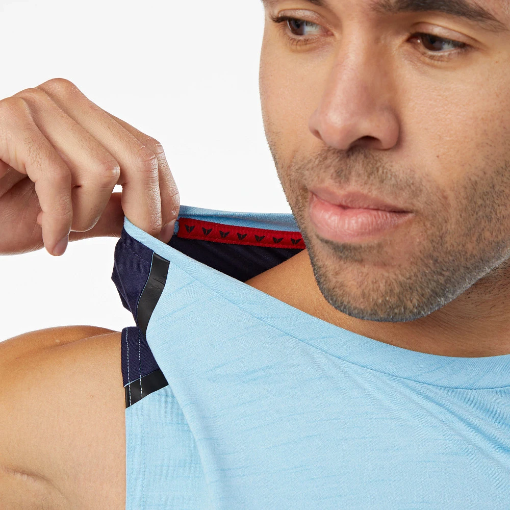 Men’s Korsa Amplify Sleeveless 2.0 :: When you’re going hard, the last thing you want is a shirt that rides up, clings or chafe. You won’t get any of that in this super lightweight sleeveless tee. Made of soft heather fabric with sweat-wicking technology, this is the hot weather climate control for your toughest training sessions. Built for any sport, any adventure.