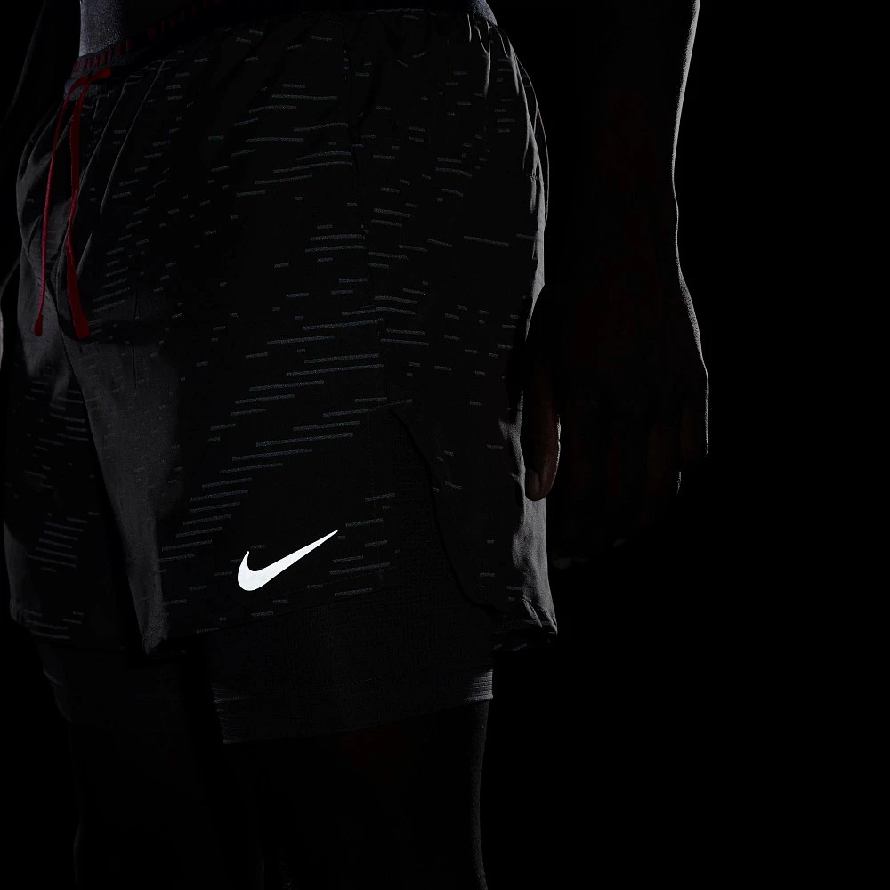 Men’s NIKE® RUN DIVISION FLEX STRIDE 2-IN-1 5″ SHORT :: Hit your stride night or day in your Men’s Nike Run Division Flex Stride 2-in-1 5″ Short. Combining supportive Dri-FIT technology with reflective elements on a stretchy woven fabric, enjoy a visibly smooth, lightweight feel. Its 2-in-1 design has an inner layer and outer shell, plus a molded gusset for unrestricted motion. An adjustable waistband allows custom fit, while the back zippered pocket provides secure storage for essential items.
