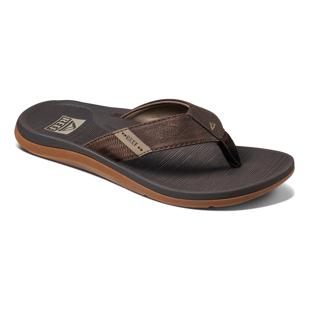 Men’s Reef® Santa Ana :: These flip flops are designed for epic moments and quiet ones — chasing waves or studying the clouds from your hammock. Water friendly straps, a soft jersey lining and high arch support are easy on your feet. The bamboo inspired textured footbed and rubber cupsole lend awesome traction and stability.