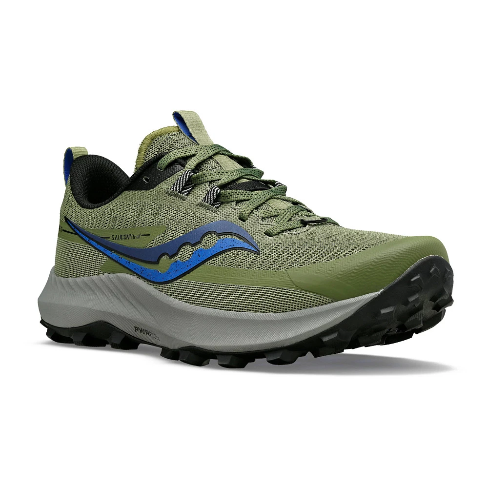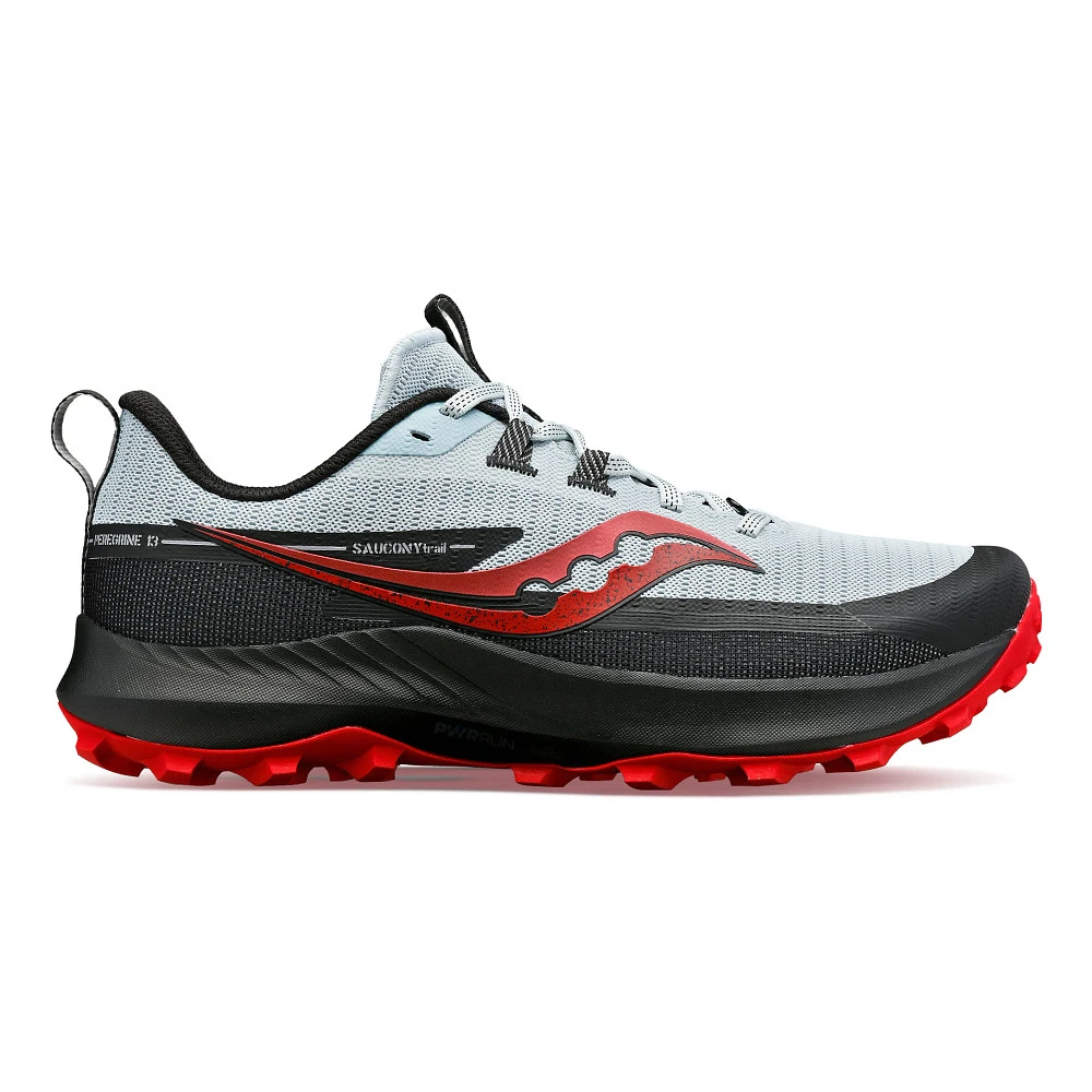 Men’s SAUCONY® PEREGRINE 13 :: Free your feet with lightweight speed! Your updated Men’s Saucony Peregrine 13 trail running shoes maintain the same PWRTRAC outsole and rockguard that make this shoe extra tough, and magical PWRRUN foam midsole that ensures ultimate off-road comfort. But this model lost even more weight (yes, you read that right!). Coming in at just 9.2 oz, you’ll be shocked at the mileage you accomplish and energy you save. With sleek new colors and small tweaks to every detail of the shoe, your Peregrine 13 offers an elevated experience while maintaining the comfort and rugged function you love from this series.