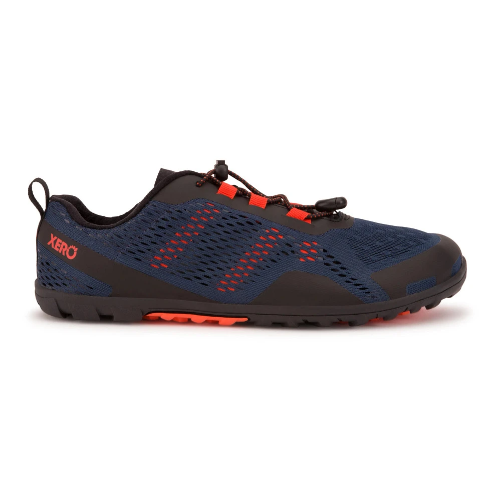 Men’s Xero® Aqua X Sport :: The Aqua X Sport keeps your feet lightweight, wet or dry. At just 7.2 oz each (M9), the Aqua X Sport sheds water like there’s no tomorrow, with a water-friendly mesh upper, quick-dry lining, nonabsorbent tongue, and toe guard drain holes. Adjustable speed laces allow for a fast, fine-tuned fit, and a midfoot strap system helps keep the foot comfortably secure. The flexible 5.5mm sole with 3.5mm lugs gives you all-terrain traction and the just-right amount of protection and ground-feedback for responsive, natural movement through all the elements.