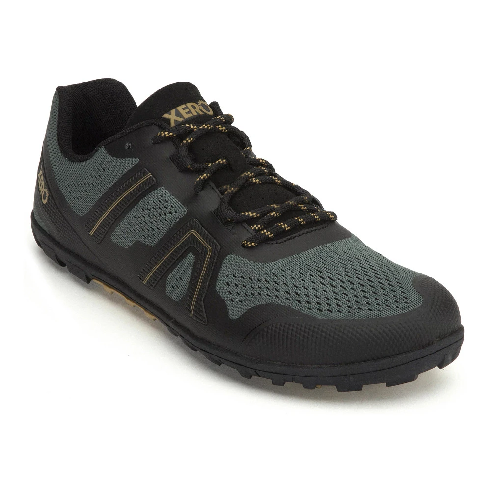 Men’s Xero® Mesa Trail II :: Natural movement meets nature. Feel connected to your world when you run or hike in the lightweight TerraFlex. The upgraded, welded upper increases mid-foot flexibility, wicking mesh keeps your feet cool and dry, and an aggressive, lugged sole provides confident traction. Bumps fade away thanks to 3mm of TrailFoam&trade hiding inside of the patented FeelTrue® sole. The heel cinch and adjustable mid-foot webbing give you a secure and stable fit, while the wide toe box lets your toes splay and flex to empower your stride