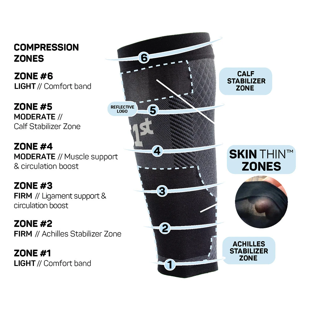OS1ST® TA6 THIN AIR CALF SLEEVES :: Ruck all day with this cooling master. The OS1st TA6 Thin Air Calf Sleeves feature never before applied technology that aids in recovery, boosts circulation and prevents overheating for maximum performance. Easy on fit with the thinnest leg fabric profile ever made and created using 400n medical grade machinery, “Thin Skinâ„¢” construction maximizes air-flow and creates a cooling effect for your legs. With 6 compression zones for comfort and support, you will increase stamina and endurance during any activity.