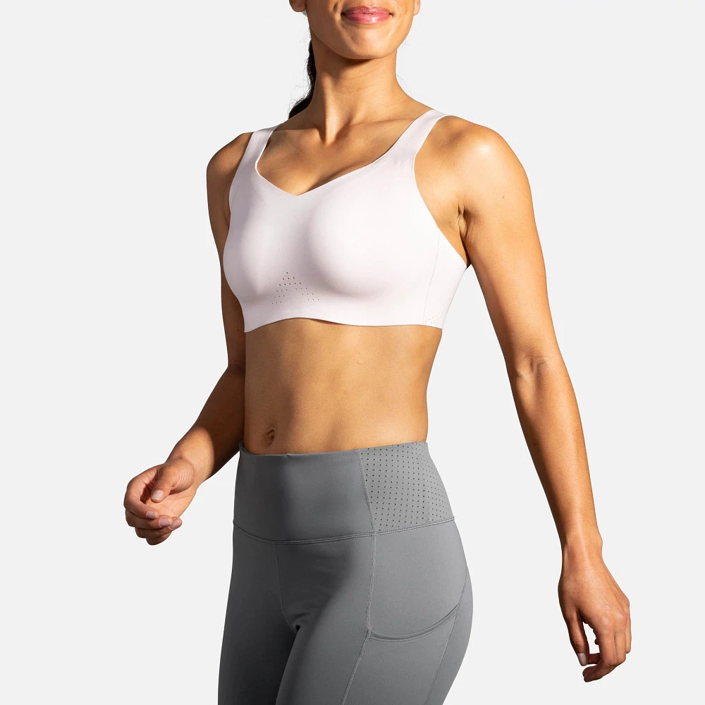Women’s BROOKS® DARE UNDERWIRE RUN BRA :: If you like the look and locked-in feel of underwires, you’ll love working out in the new Women’s Brooks Dare Underwire Run Bra. Switch things up with straps that go from racerback to scoop back in a flash. Molded cups support and separate while sweat-wicking DriLayerâ„¢ Horsepower fabric moves sweat away from skin to evaporate.