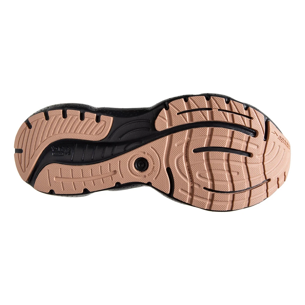 Women’s BROOKS® GLYCERIN STEALTHFIT 20 RUN WILD :: Sneak up on your competition wearing your special edition Women’s Brooks Glycerin Stealthfit 20 Run Wild. Black as night with bold big-cat prints on the lacing and logo adds a little roar to every step. New nitrogen-infused DNA LOFT v3 is terrifically innovative and ensures a softly-cushioned but bouncy landing. Coupled with a refreshed midsole and outsole that’s wider than its predecessors, transitions are smooth and painless. On race day, the feather-weight technology and adaptable fit of your Stealthfit 20 Run Wild takes all of your hard work and turns it into effortless performance.