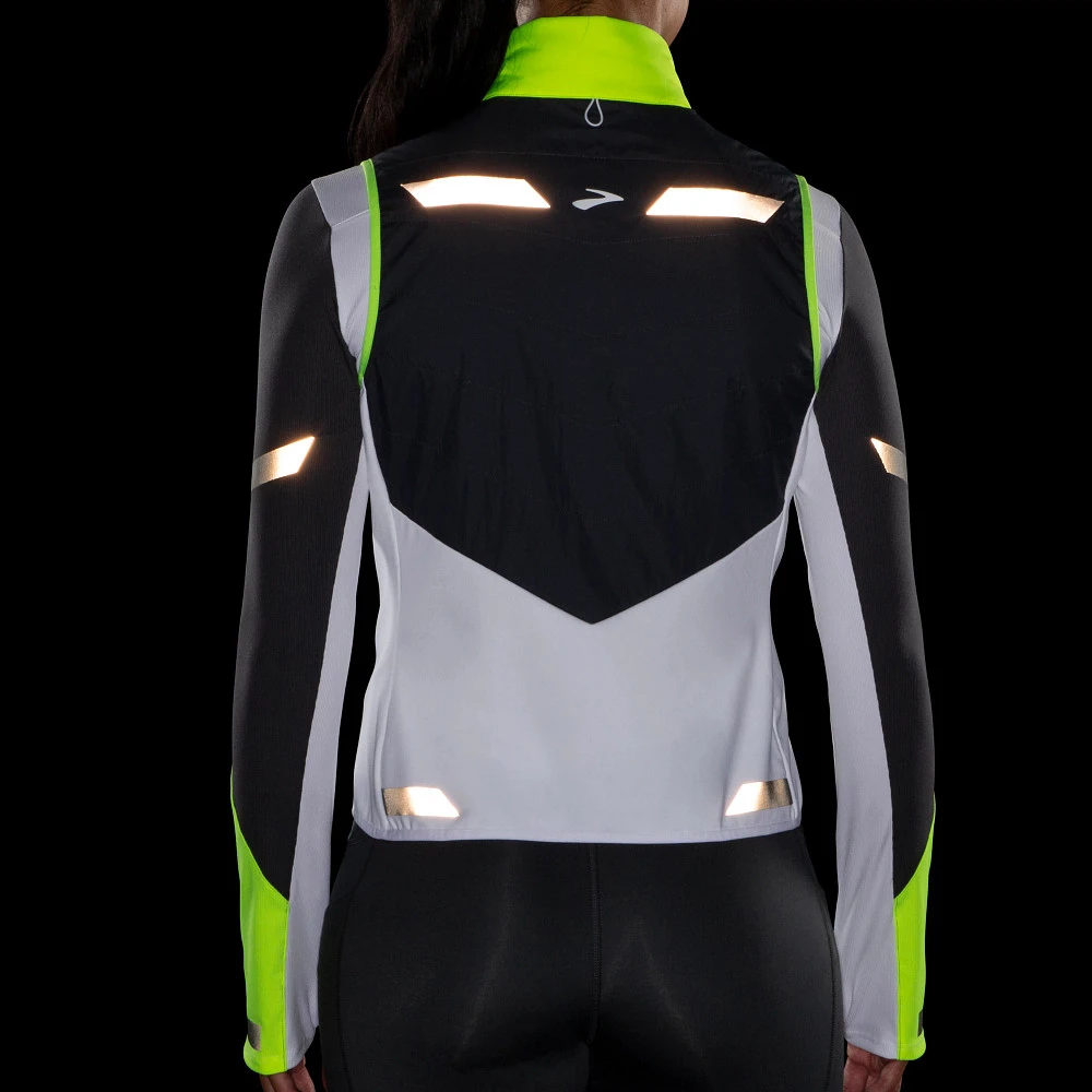 Women’s Brooks® Run Visible Insulated Vest :: Take on the night with the Women’s Brooks Run Visible Insulated Vest. Brilliant 3Mâ„¢ Scotchliteâ„¢ Carbon Black Stretch Reflectivity and Brooks Nightlife Yellow, let you stand out in one of the most visible colors to the human eye. Constructed from weather resistant materials, stay warm and dry on your toughest runs.