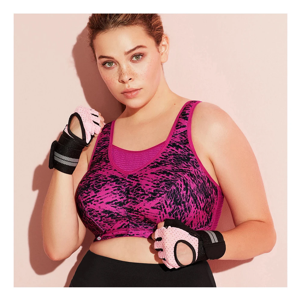 Women’s Glamorise® No-Bounce Cami Elite Sports Bra :: Upper bust control plus high performing moisture wicking fabrics are the key features of this bra. Soft materials for maximum comfort and plush hook and eye closure avoid any pressure points. A two-way stretch back secures your straps in place to complete the look of this fabulous sport bra. Includes a free lingerie wash bag for easiest care.