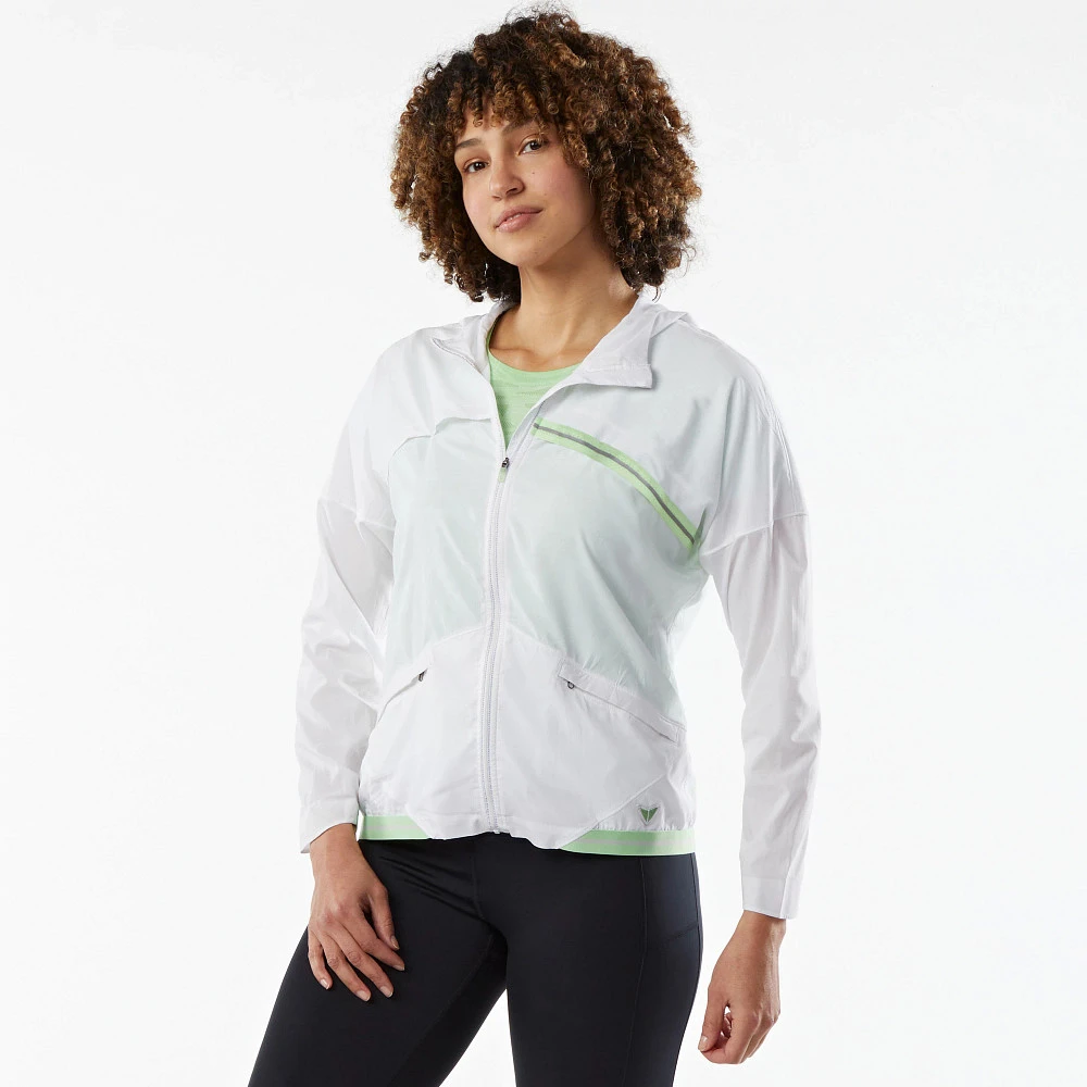 Women’s Korsa Accelerate Run Jacket :: Nothing can slow you down with nearly weightless wind and weather protection that packs into its pocket for easy transport. Front and back ventilation deliver precision airflow and has a back vent for added airflow and a place for your ponytail. Your secret weapon on those chilly windy run days.