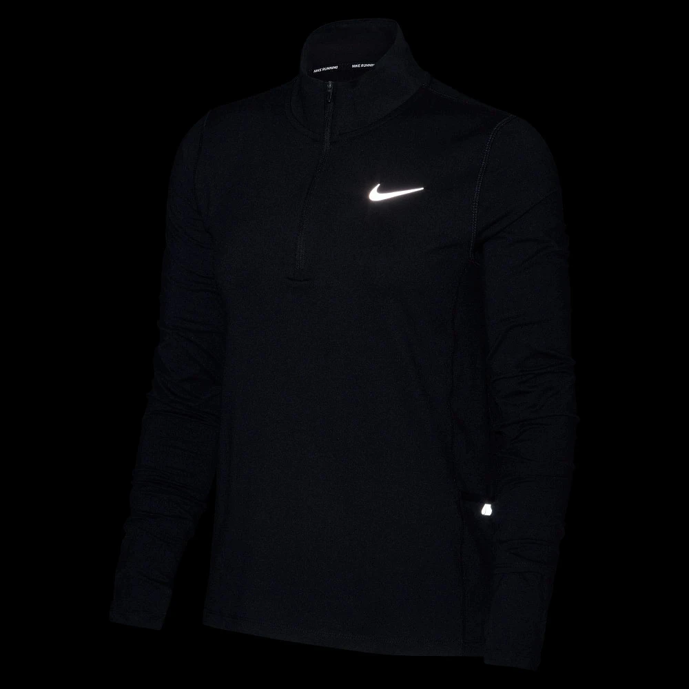 Women’s Nike® Dri-FIT Element Top Half Zip :: Cover up and block out the cold with your mock-neck Women’s Nike Dri-FIT Element Top Half Zip, then ease into the thumbholes at the ribbed cuffs and customize ventilation at the neck to cool off as your workout heats up.