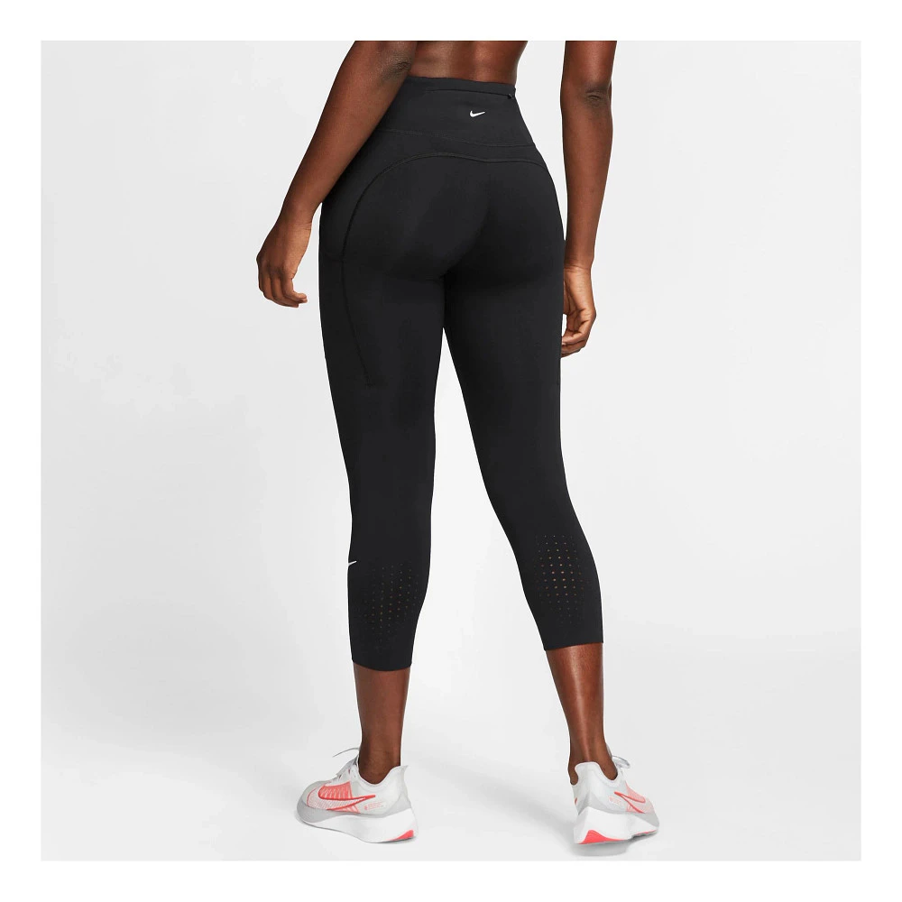 Women’s Nike® Epic Luxe Crop :: Feel a full range of powerful stretch and support in your Women’s Nike Epic Luxe Crop. Nike Power fabric generates no-quit, body-hugging comfort for your most demanding running. Streamline your fit with the fold-over waistband while the added seam in back adds to the flattering design. Zip your phone in the back pocket and just do it.