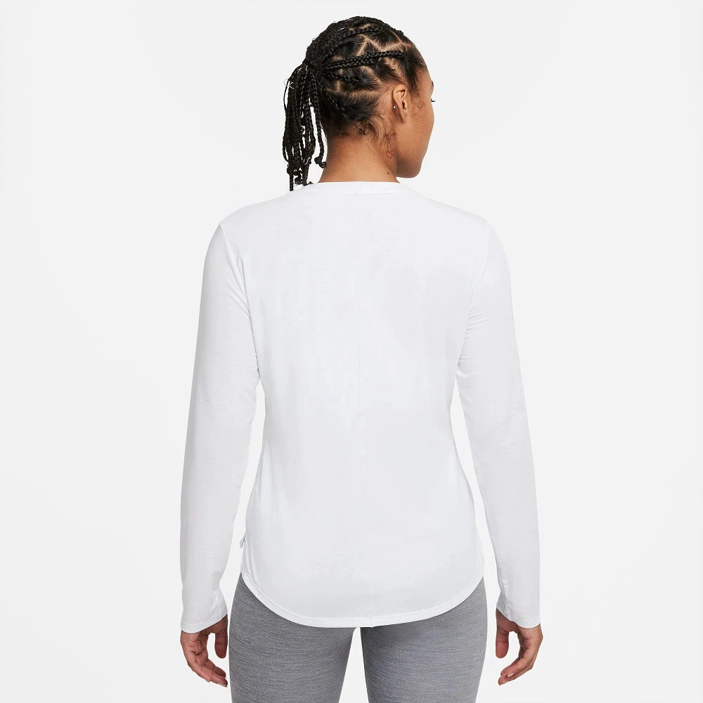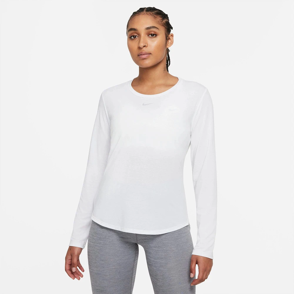Women’s Nike® One Luxe Dri-FIT Long Sleeve Top :: Versatile and stylish, wear your Women’s Nike One Luxe Dri-FIT Long Sleeve Top to yoga, lifting, or your weekly long run. Nike Dri-FIT technology wicks sweat away from your skin for faster evaporation, so you stay dry and comfortable. Designed with a natural relaxed fit and a longer scooped back, feel confident as you get your workout in.