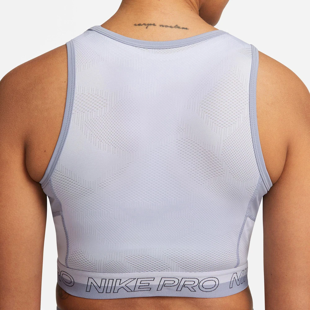 Women’s Nike® Pro Dri-FIT Femme Crop Tank :: A tank with sweat-fighting superpowers! Your Women’s Nike Pro Dri-FIT Femme Crop Tank will keep you fresh and supported through your most intense running and training sessions. Featuring Dri-FIT technology, this cropped top ensures maximum comfort and a full range of motion in the arms and shoulders with its racerback design. Train in style with the iconic Nike Pro logo subtly featured on the front.