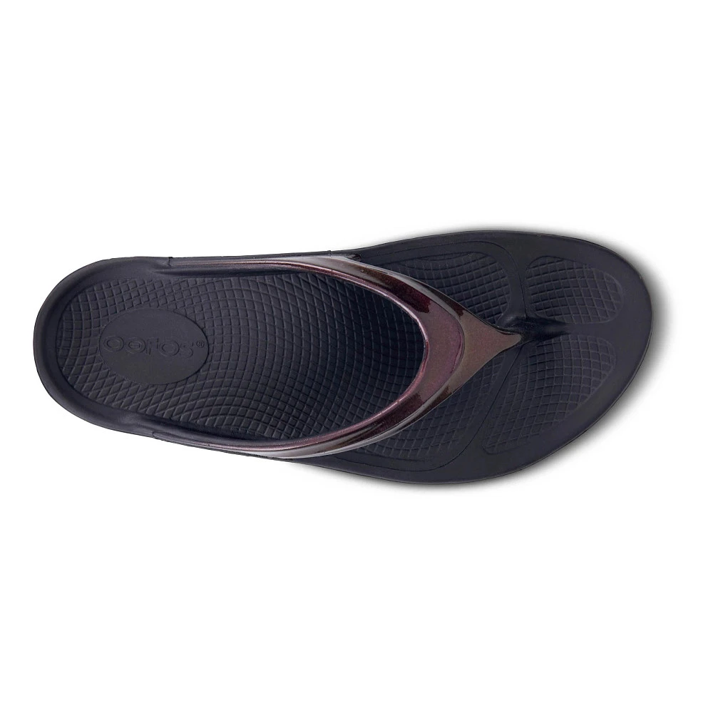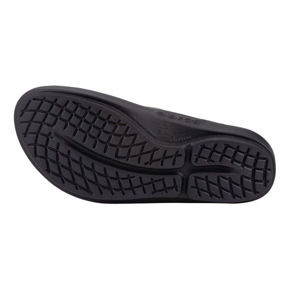 Women’s OOFOS® OOLALA LUXE :: Revive feet in style after workouts or whenever in the new Women’s OOFOS OOlala Luxe Sandal. You’ll love the new silhouette that’s slimmer and more streamlined, plus bold new colors and glossy uppers. Take the stress off tired feet and joints with super-soft cushion that absorbs 37% more impact than standard footwear foam. Your Women’s OOlala Luxe Sandal is waterproof too, so take ’em to the beach, lake or pool.