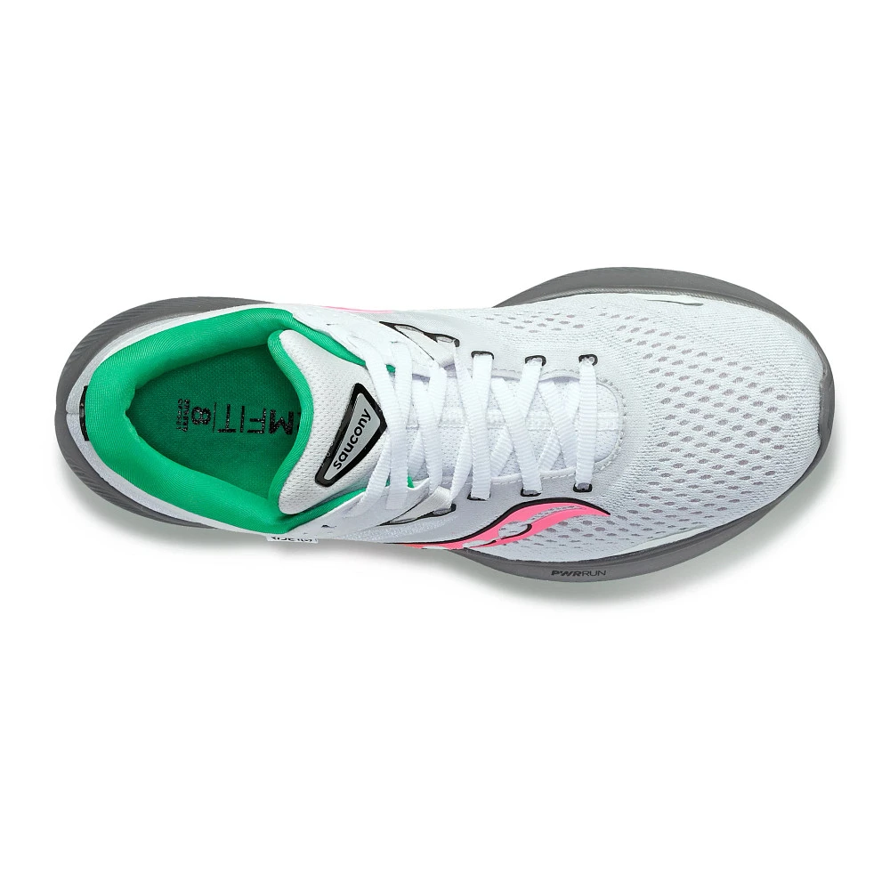 Women’s SAUCONY® RIDE 16 :: Revolutionize your running. The updated Women’s Saucony Ride 16 running shoes tweaked previous designs while upholding the same comfort that made this series famous. Get the feeling that you’re sitting in your shoe, not on top of it, thanks to higher sidewalls than its predecessors. Hugely cushy and so supportive, it boasts the same PWRRUN cushioning and PWRRUN+ sockliner as before that will ensure extra spring in your step and softer landings. Even more, your Ride 16 will elevate your look while you’re slaying runs as you hit the streets in fresh new colors.